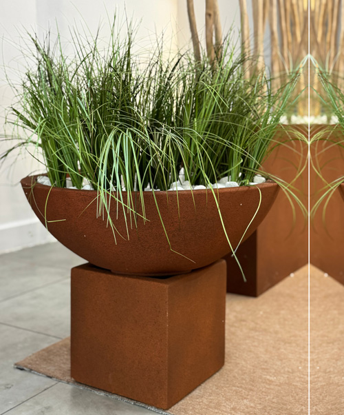 Through its years of experience in the international market, Franoma knows what the current trends and consumer movements are. Based on this expertise, we have added the beautiful rusty steel color to our range. A line that is indispensable for your collection. Whether you work at a wholesaler, in interior styling, at a garden center, in project planting, or in hospitality. Rusty steel planters suit any project.